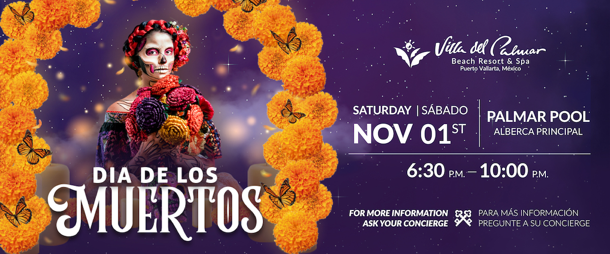 Villa del Palmar Puerto Vallarta hosts two special nights honoring both Halloween and Dia de los Muertos. On October 31, Villa del Palmar gets festive with a special Halloween Night from 6:30 pm to 10:00 pm at Restaurant Sea Food Market; a great chance to join the fun without leaving the resort.