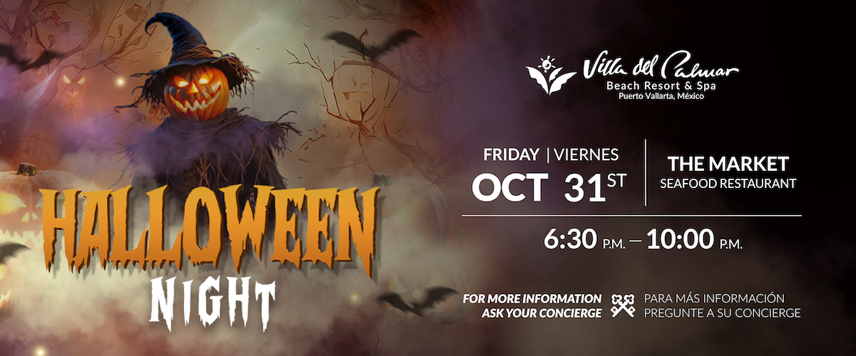 This year, Villa del Palmar Puerto Vallarta throws a lively Halloween Night on Friday, October 31st, from 6:30 pm to 10:00 pm at Restaurant Sea Food Market.