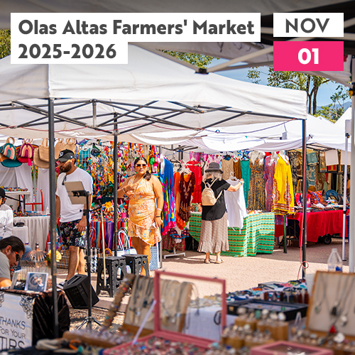 The Olas Altas Farmers' Market returns to Lázaro Cárdenas Park for its seventeenth season, offering local produce, handmade goods, and delicious food.