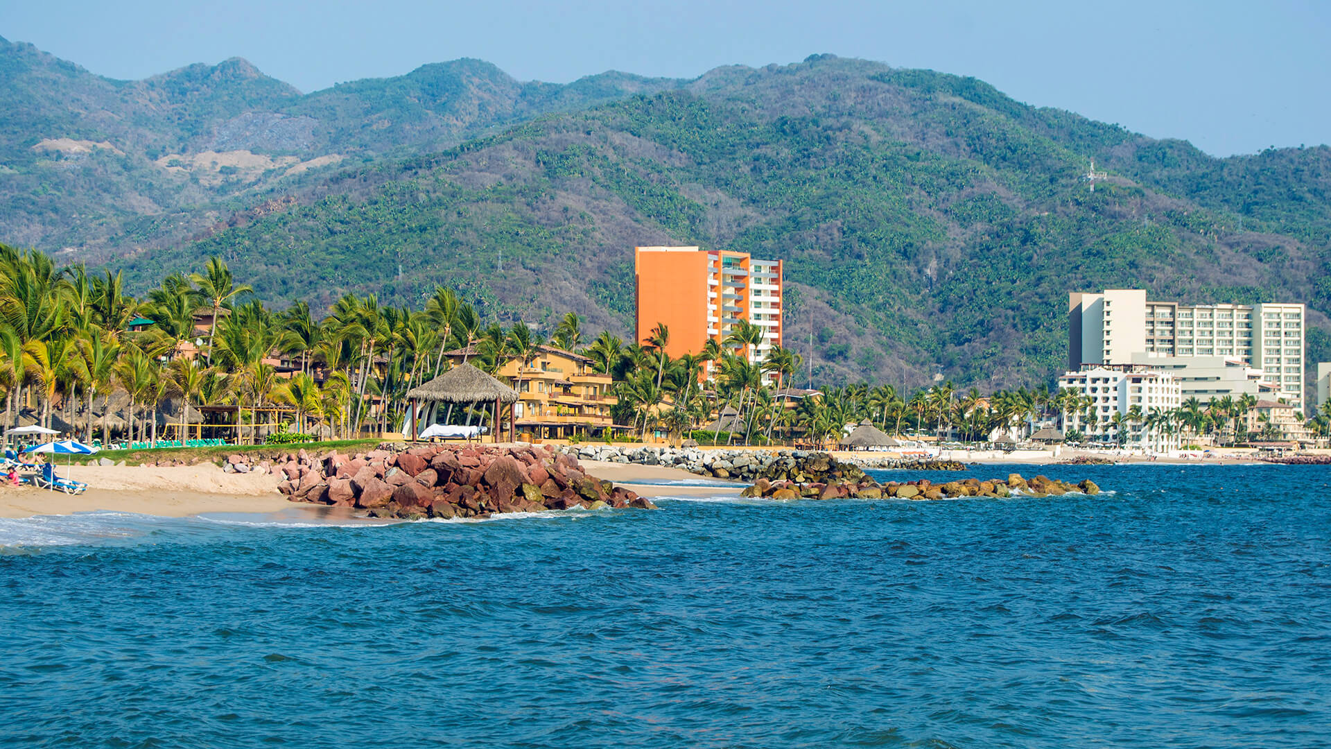 The lush tropical jungle of the Sierra Madre mountains is a constant backdrop to Puerto Vallarta’s soft golden sand beaches.